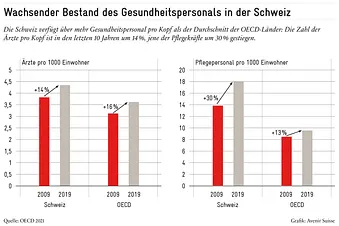 Während der Pandemie haben sich viele über eine Budgetpolitik beklagt, die unser Gesundheitssystem «kaputtgespart» habe. Die Zahlen widerspiegeln eine andere Realität: Die Gesundheitsausgaben pro Kopf sind in den letzten zehn Jahren um durchschnittlich 2,1% pro Jahr gestiegen. Im selben Zeitraum stieg die Zahl der Ärzte pro Kopf insgesamt um 14%, die des Pflegepersonals um 26%.
