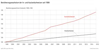Viele Schweizerinnen und Schweizer leben im Ausland, um zu studieren, zu arbeiten oder als Rentner. Motive um im Ausland zu leben gibt es einige. In den vergangenen Jahren stieg die Zahl der Auslandschweizer jährlich um 2% an. 2016 legte dieser Wert sogar um 2,9%, bzw. 21’784 Personen zu, während die inländische Stimmbevölkerung nur um 1,1% wuchs. Ein langfristiger Vergleich seit 1999 zeigt, dass die Gruppe der im Ausland lebenden Schweizer mehr als doppelt so schnell gewachsen ist als diejenige der Inländer (vgl. Grafik).