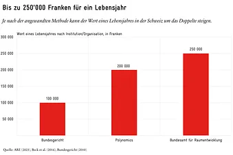 Dieser Blog wurde am 4. Juli 2023 aktualisiert. Das Bundesamt für Raumentwicklung berechnet den Wert eines Lebensjahres bei guter Gesundheit auf 250'000 Franken.