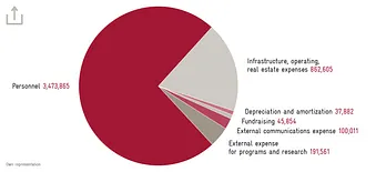 Personnel expenses fell from CHF 4,197,717 to CHF 3,473,865 compared to the previous year. This decrease is primarily due to staffing changes that were not immediately replaced in the 2024 reporting year. Individual tasks were temporarily outsourced in the short term, contributing to an increase in infrastructure and operating expenses from CHF 731,750 to CHF 862,605. Programs and research expenditures amounted to CHF 191,561 (previous year: CHF 307,301) reflecting a decrease largely driven by the growing number of digital publications, which helped reduce printing costs. On the other hand, expenses for communications rose from CHF 82,414 to CHF 100,011, partly due to the increased use of new formats.