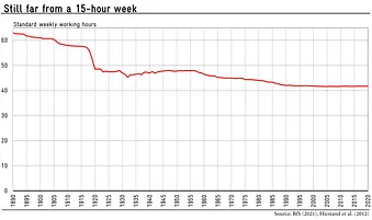 We thus work far more hours than the economist John Maynard Keynes famously mispredicted in around 1930. In anticipation of rising wages, Keynes considered a 15-hour week in 2030 to be realistic: People would be able to meet their consumption needs quickly and, free from economic constraints, would have plenty of free time for art and reading philosophy.