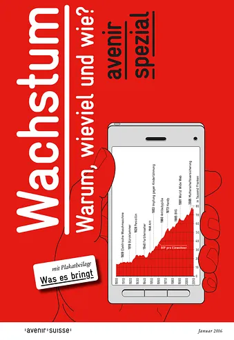 Growth is indispensible and makes life easier. Who would willingly do without washing machines, antibiotics or smartphones – let alone health care or old age cover? But growth shouldn’t be bought at the expense of future generations. It’s precisely because growth is indispensible that it has to be treated responsibly. Undesirable side effects should be avoided and negatives repercussions on the environment or resources minimised to raise the overall benefits. Avenir Suisse’s latest publication shows in detail just how important, and how difficult, this all is. A poster style supplement illustrates growth’s most important achievements through clear graphics.