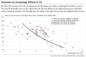 It is unclear if, and how quickly, the Beveridge Curve will shift back. The increased difficulty for companies to fill vacancies points to greater competition for suitable personnel. They might not be able to avoid wooing job seekers with better working conditions or higher wages any time soon.