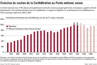 Le Conseil fédéral suit ainsi les propositions de son groupe d’experts. En 2027, les dotations au Fonds national suisse (FNS) devraient être inférieures de 131 millions de francs à ce qui était initialement prévu, et celles à Innosuisse de 32 millions de francs. Ces mesures ponctuelles doivent contribuer à éviter des déficits de plusieurs milliards de francs dans le budget fédéral.