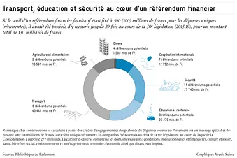 Dans l’ensemble, de nombreux domaines d’activité seraient toutefois concernés par la possibilité de soumettre certaines décisions financières au référendum. Alors que les objets mentionnés ont tendance à être attribués à un camp politique particulier, le contexte est plus équilibré en ce qui concerne les décisions prises dans les domaines «éducation et recherche» et «transport».