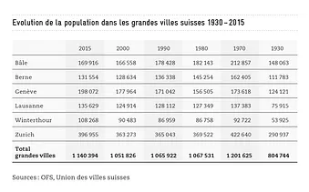 Baby-boomers aisés et jeunes citadins vont se retrouver en ville. Le groupe d’âge des 25 à 40 ans est massivement surreprésenté en particulier dans les six plus grandes villes (plus de 100 000 habitants). Ce phénomène se retrouve aussi dans les villes moyennes de 50 000 à 100 000 habitants, mais dans une moindre mesure. En revanche, les baby-boomers sont encore clairement sous-représentés dans les villes : ce sont les conséquences encore visibles de l’exode urbain des années 1980.