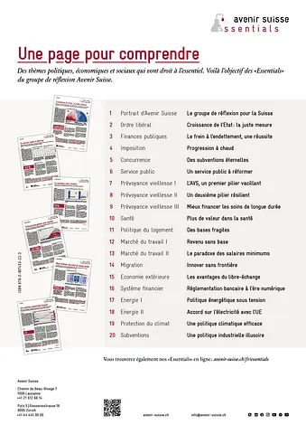 Pour lancer les festivités de nos 25 ans d’existence, nous avons résumé, les principaux thèmes politiques, économiques et sociaux de la Suisse en 20 fiches synthétiques. Les sujets traités vont de la croissance de l’Etat à l’innovation, au libre-échange et au financement des soins de longue durée, en passant par le frein à l’endettement et la politique fiscale. Nous abordons également des questions controversées telles que l’avenir du service public ou les défis de l’approvisionnement énergétique.