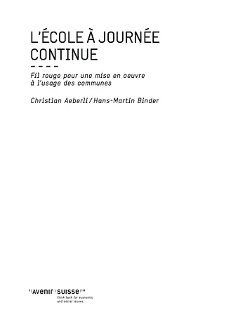 Par cette nouvelle publication d’Avenir Suisse, les auteurs Christian Aeberli et Hans-Martin Binder démontrent les lacunes du système scolaire actuel. Pour les contourner, ils proposent une formule dans le sens d’une école à journée continue non obligatoire. Même si aujourd’hui, la plupart des parents sont tous deux actifs professionnellement et, par conséquent, en faveur d’une telle solution, seules 35 communes dans l’ensemble de la Suisse alémanique et de la Suisse romande offrent une école à journée continue. Le guide pratique réalisé par Avenir Suisse décrit étape par étape comment transformer une école traditionnelle en école à journée continue. Tous les aspects sont abordés, de l’analyse des besoins à la planification du personnel et de l’évaluation des coûts jusqu’aux décisions politiques et la réalisation. «L’intégration des intérêts de chacun dans le processus de planification est décisif pour la réussite» souligne Hans-Martin Binder, co-auteur, de l’Institut Interface à Lucerne. Dans un environnement pédagogique souvent difficile, les écoles à journée continue offrent un cadre stable pour l’enseignement et l’apprentissage qui intègre la surveillance des devoirs et des loisirs de qualité stimulant le développement intellectuel et physique. Un encadrement particulièrement profitable aux enfants livrés à eux-mêmes. «Les écoles à journée continue ont un effet positif sur la capacité d’assimilation des élèves et augmentent leurs chances de réussite» rajoute Christian Aeberli. Les écoles à journée continue sont également profitables aux parents, et en particulier aux femmes dont l’activité professionnelle est inutilement alourdie par le système scolaire actuel, voire même impossible. Aujourd’hui, bien que les femmes suivent le même parcours éducatif que les hommes, elles ont davantage de difficultés à exploiter leur potentiel ce qui, d’un point de vue économique, est un réel problème dans notre société en faible croissance. De même, l’école à journée continue répond clairement aux besoins des femmes élevant seules leurs enfants, ou des élèves dont les parents ne parlent pas le français, respectivement l’allemand. Par son action en faveur de l’école à journée continue, Avenir Suisse souhaite donner une impulsion pour des initiatives publiques et privées locales. « Chaque commune doit décider d’elle-même, si elle souhaite entreprendre une démarche dans le sens de l’école à journée continue et sous quelle forme » explique Thomas Held. Pareil pour le financement, selon Avenir Suisse, plusieurs solutions flexibles sont possibles en fonction des spécificités de chaque commune. Des variantes qui peuvent s’appuyer sur du bénévolat, une contribution parentale, ou encore une amélioration de l’efficacité résultant d’une réforme scolaire.