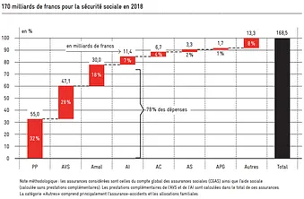 Avec 47 milliards de francs consacrés à l’AVS (y compris les prestations complémentaires) et 55 milliards de francs par an à la prévoyance professionnelle, la prévoyance vieillesse est l’une des assurances sociales les plus importantes. Au total, elle représente 60% de toutes les prestations versées par les assurances sociales en 2018.