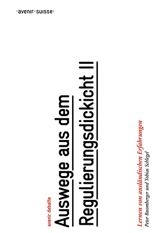 Il tema della regolamentazione, e soprattutto la sua crescita costante, occupa il pubblico svizzero ormai da lungo tempo. I tentativi ricorrenti di combattere la marea normativa finora non hanno avuto successo. Per la più recente pubblicazione di Avenir Suisse – la seconda su questo tema – Peter Buomberger e Tobias Schlegel hanno cercato approcci promettenti all’estero. Per la Svizzera essi suggeriscono regole «one-in-one-out», date di scadenza per le leggi, maggiore moderazione per quanto riguarda l’adozione di standard internazionali, il controllo di un approccio regolamentare «zero-based» e un freno macroeconomico alla regolamentazione.