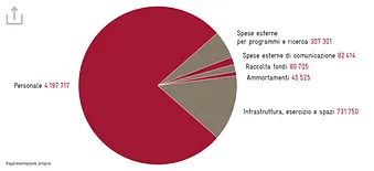 Nell’anno in esame 2023, le spese per infrastruttura ed esercizio hanno registrato una riduzione a CHF 731’750 rispetto al valore di CHF 886’048 dell’anno precedente, soprattutto in ragione degli effetti una tantum del 2022. Le spese per programmi e ricerca sono scese a CHF 307’301 (anno precedente CHF 332’340), poiché l’aumento delle pubblicazioni digitali ha consentito di ridurre i costi di stampa. Nel 2023 le spese per la comunicazione sono ammontate a CHF 82’414, evidenziando un calo rispetto all’anno precedente grazie alla riduzione della spesa esterna. Le spese per il personale sono aumentate da CHF 4’008’721 (dato 2022) a CHF 4’197’717. Nel complesso l’importo preventivato di CHF 5,5 milioni è stato rispettato.