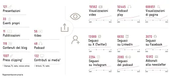 Le piccole modifiche apportate al nostro sito web hanno prodotto i risultati auspicati in termini di frequenza delle visite: durante l’anno in rassegna, sia i richiami delle pagine che il numero di visitatori sono aumentati del 38%. Una popolarità crescente è stata registrata anche per i canali podcast che curiamo regolarmente dalla fine del 2022: pur avendo leggermente ridotto il numero di contributi, le riproduzioni sono raddoppiate e i nostri follower su Spotify ed Apple sono aumentati dell’84%. Particolarmente soddisfacente è il dato dei podcast di grande impatto – ben l’82%, probabilmente un record – vale a dire le puntate ascoltate per almeno i tre quarti della loro durata totale.