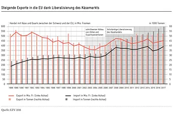 Die jahrelang sinkenden Käseexporte der Schweiz in die EU konnten Mitte der 2000er Jahre in wieder steigende Ausfuhrraten gekehrt werden. Die Öffnung des Käsemarktes zwischen der Schweiz und der EU führe zu einer positiven Dynamik, neue Käsesorten gewannen rasch Marktanteile und konnten erfolgreich exportiert werden.