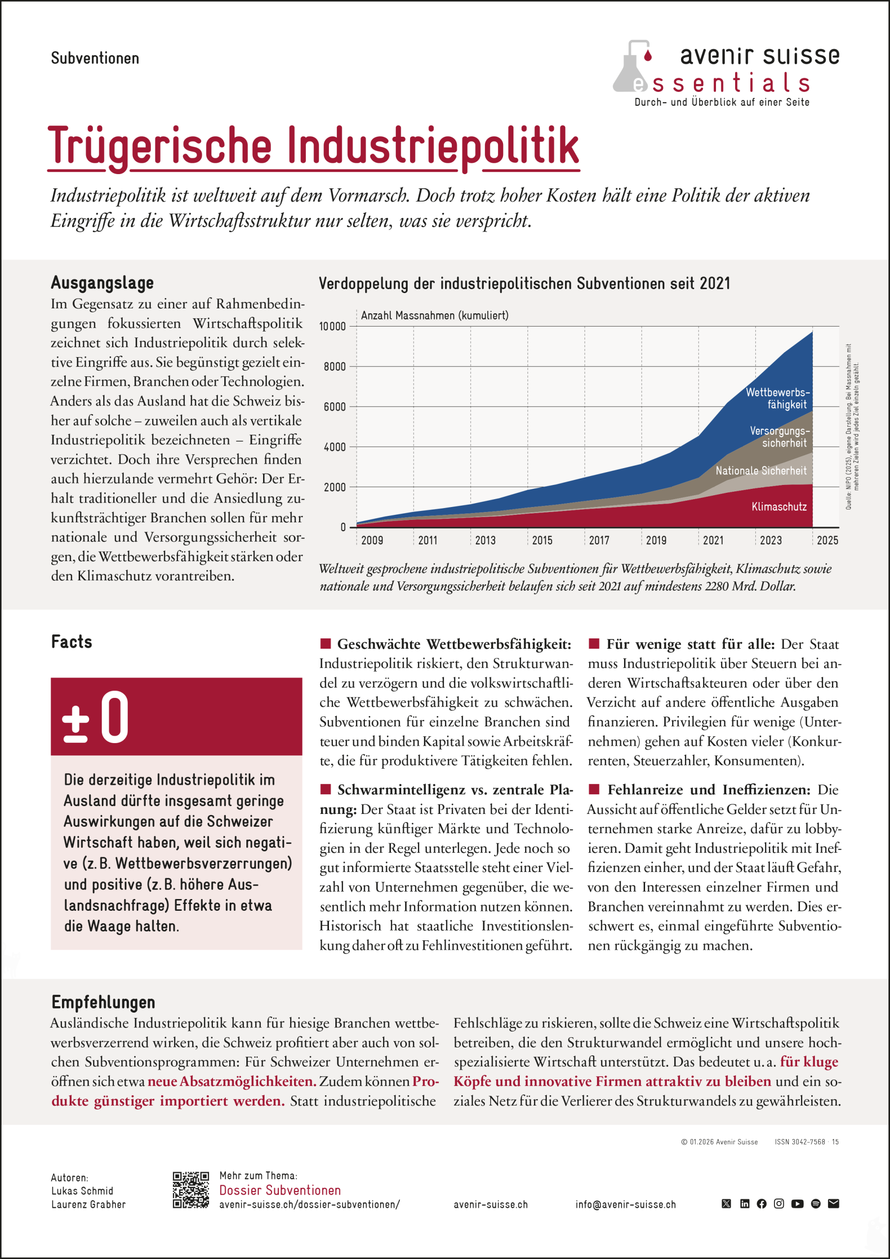 Weitere Essentials zu wichtigen Themen finden Sie hier: Avenir-Suisse-Essentials