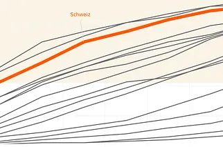 Es ist schwierig, verallgemeinernde Aussagen zum Zusammenhang von Wirtschaftswachstum und Ungleichheit zu machen. Die bekannteste theoretische Überlegung hierzu stammt vom Ökonomen Simon Kuznets (1955). Er postulierte, dass die Ungleichheit der Einkommen mit der Industrialisierung zunächst zunehme, um dann wieder gleichmässiger zu werden. Empirisch konnte diese Theorie jedoch nie klar belegt werden. Überhaupt ist der Zusammenhang von Wachstum und Ungleichheit umstritten: Institutionen wie IWF oder OECD warnten in jüngerer Zeit davor, eine allzu grosse Ungleichheit könne das Wachstum hemmen – ernteten dafür aber auch Kritik. Die Resultate seien vor allem Folge der gewählten, suboptimalen Methode, merkten namhafte Kritiker an. Der Zusammenhang zwischen Wachstum und Ungleichheit ist vielschichtiger als allgemeine Resultate es erscheinen lassen. So können etwa der Entwicklungsstand der jeweiligen Länder und vor allem auch das Ausgangslevel der Ungleichheit den Zusammenhang deutlich beeinflussen. Konsens herrscht gemeinhin darüber, dass extreme Ungleichheit dem Wohlstandswachstum nicht förderlich ist. Etwa dann, wenn grosse Teile der Bevölkerung keinen Zugang zu grundlegender Bildung haben oder wenn zu grosse Unterschiede innerhalb von Ländern zu politischer Instabilität führen. Eine allgemeingültige Aussage dagegen lässt sich nicht machen. Sicher aber ist: Wohlstand erachten alle als gut und viele empfinden eine moderate Ungleichheit als wünschenswert. Und die Schweiz hat beides, wie sich an folgender Grafik gut ablesen lässt. Sie zeigt auf der vertikalen Achse die Ungleichheit (je weiter oben, desto tiefer ist die Ungleichheit) und auf der horizontalen Achse das Pro-Kopf-BIP. Idealerweise wäre ein Land oben rechts in der Abbildung (hoher Wohlstand, gleichmässig verteilt) angesiedelt.