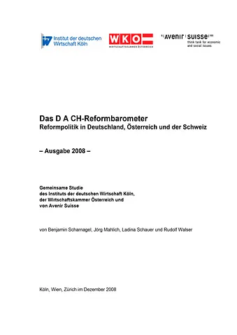 Der reformpolitische Wille in der Schweiz liegt nach fünf Jahren mässigen Abschneidens nun vor Österreich und Deutschland. Dies zeigt die diesjährige Ausgabe des «D A CH-Reformbarometers», das gemeinsam vom Institut der Deutschen Wirtschaft, von der Wirtschaftskammer Österreich und Avenir Suisse präsentiert wird. Seit September 2002 erfasst und bewertet es die Reformanstrengungen in den für das Wachstum und die Beschäftigung entscheidenden Bereichen Arbeitsmarktpolitik, Sozialpolitik sowie Finanz- und Steuerpolitik dieser drei Länder. Zurückzuführen ist das gute Abschneiden der Schweiz auf Reformen in der Invaliden- und Krankenversicherung. Damit konnten entscheidende Reformrückschritte aufgeholt werden.