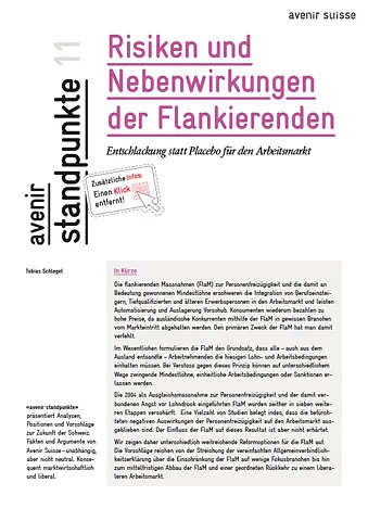 Die flankierenden Massnahmen (FlaM) wurden 2004 als Begleitmassnahme zur Personenfreizügigkeit eingeführt. Die Angst vor Lohndruck aus dem Ausland hat sich jedoch als weitgehend unbegründet erwiesen. Vielmehr haben die FlaM selbst negative Auswirkungen: Sie erschweren die Integration von Berufs- und Quereinsteigern, Tiefqualifizierten, Älteren und Flüchtlingen. Sie verteuern die Arbeit und leisten so Automatisierung und Auslagerung Vorschub. Und sie zementieren die Hochpreisinsel, weil sie teilweise den Wettbewerb ausschalten. Die FlaM haben damit kontraproduktive Wirkungen zum ursprünglich angedachten Zweck. Ein Rückbau der FlaM liegt im Interesse eines liberalen Arbeitsmarktes und derjenigen, die neu in den Arbeitsmarkt einsteigen wollen.