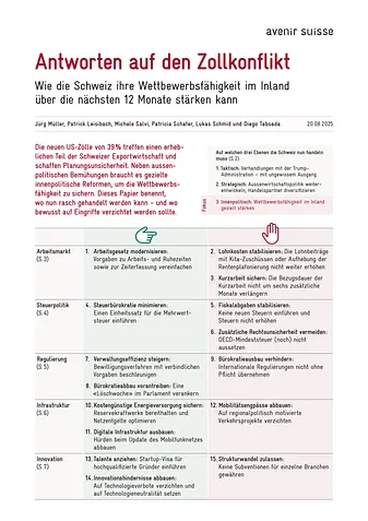 Antworten auf den Zollkonflikt Analyse Wie die Schweiz ihre Wettbewerbsfähigkeit über die nächsten 12 Monate stärken kann 20.08.2025, Jürg Müller, Patrick Leisibach, Michele Salvi, Patricia Schafer, Lukas Schmid, Diego Taboada