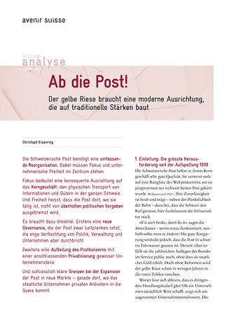 Ab die Post! Analyse Avenir Suisse legt 5-Punkte-Plan für die Modernisierung der Schweizerischen Post vor 20.10.2025, Christoph Eisenring