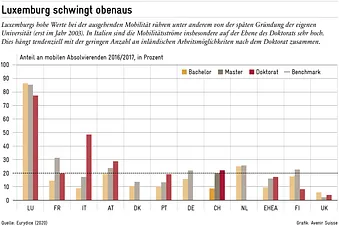 Gemäss einer Untersuchung von Movetia, der nationalen Agentur für Austausch und Mobilität, lag die durchschnittliche Mobilitätsquote für Absolventen aus der Schweiz mit Abschlussjahr 2020 bei 15,7%. Dabei gibt es grosse Unterschiede zwischen den Hochschulen. Drei Faktoren scheinen dabei besonders entscheidend für eine höhere grenzüberschreitende Mobilität zu sein: internationale Lehrangebote, ein entsprechendes Studienumfeld und attraktive Rahmenbedingungen für Studierende aus dem Ausland. Je stärker das institutionelle Mindset auf Mobilität (in beide Richtungen) ausgerichtet ist, desto eher nehmen Studierende die Möglichkeit wahr, ins Ausland zu gehen.