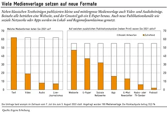 Da sich die Umfrage an Verlage mit Wemf-zertifizierten Titeln richtete, hat die Befragung eine Schlagseite Richtung alte Medienwelt. Nicht enthalten sind neue Online-Medien wie die «Republik», «Bajour», «Tsüri», «Portal24», «Nau» oder «Zentralplus». Die Umfrage deckt daher vor allem den Lokal- und Regionaljournalismus von traditionellen Verlagen ab. Die Ergebnisse sind somit mit entsprechender Vorsicht zu interpretieren.
